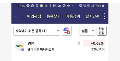 과제5 : 관심 개별 주식( 웨이스트 매니지먼트 / WM ) 투자 난이도 확인