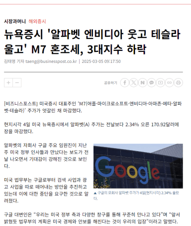 나는 미국주식 알파벳A(구글) 을 보유하고 있으며, 2025년 상반기 조정후 하반기 이후 조금 씩 상승 할 기업으로 생각한다.