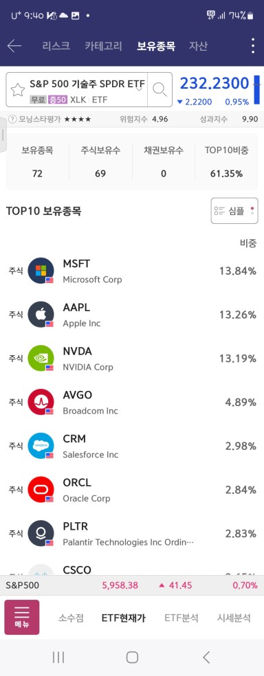 미국주식 정보기술 섹터 top10배당금과 배당성장률,수익률