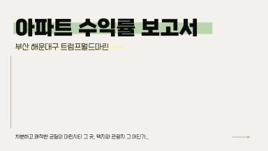 해운대 트럼프월드마린 수익률 분석 보고서 [열반스쿨 기초반 79기 49조 뽀송구름]