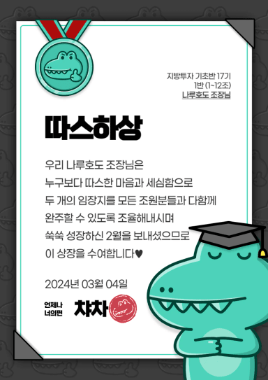 [지기17기 지기는(죽이는)2조, 나루호도8] 24년 2월 복기와 조장후기>_<