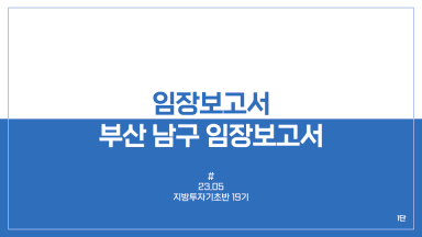 부산광역시 남구 1주차 임장보고서 [지방투자 기초반 19기 59조 1단]