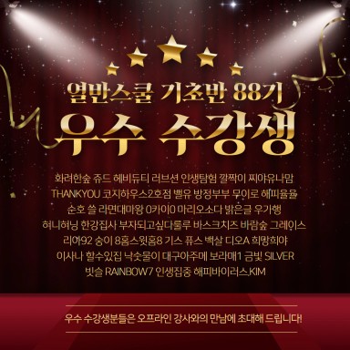 [공지] 열반스쿨 기초반 88기 MVP 및 우수 수강생을 발표합니다 🎉