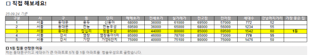 과제 제목 양식✍️ [꼬꼬바] 내집마련 챌린지 DAY 3 / 가장 좋은 집 골라보기 👑 엑셀 업로드 혹은 각 항목별로 작성해 여기에 올려주세요 오늘 과제를 마치며 느낀 점을 적어주세요 ❤️ 역세권만 찾아보다가 조금 멀더라도 언덕이 있더라도 서울인 곳을 알게 되었습니다. DAY 2과제에 찾아보고 Day3에서 1등인 집을 올리는 것이였는데 DAY2에 다올렸어