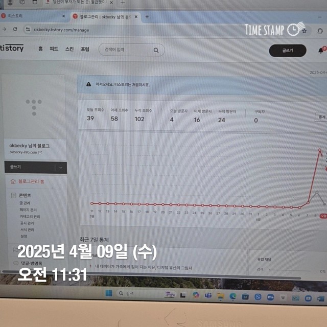 짧은 자기소개 40대 주부 블로그로 수익 창출 하려고 해요~ 승인 받는 데 걸린 시기 4월8일에 시작하여 4월26일에 승인 되었어요! 대략18일 작성한 글 개수와 주제 38개 디지털 유산 시리즈로 주제 선정 포기하지 않고 결과를 만들어 낸 나에게 칭찬을, 함께 한 동료들에게 감사의 한마디 꾸준하면 승인됩니다!! 인증 사진