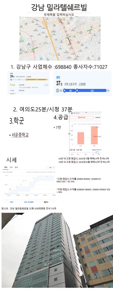과제 제목: 강남구 역삼동 밀라텔쉐르빌아파트 수익률 분석 보고서 [열반스쿨 기초반 65기 134조 차예은]
