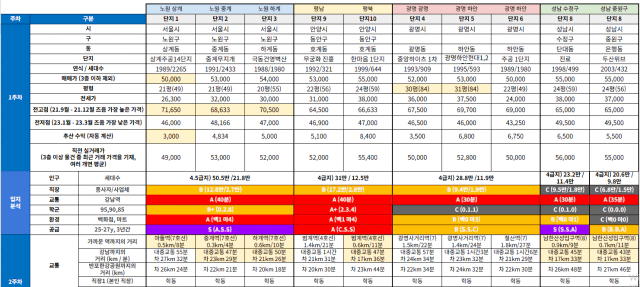 1️⃣ 열심히 정리한 내집마련 보고서 1주차 파트 (엑셀 & PPT 양식에 맞추어) 화면 캡쳐 이미지 첨부 2️⃣ 스스로 작성해보면서 느낀점을 한 줄이라도 적어봅시다 :) 스스로 느낀점을 작성하면서 앞으로 어떤 부분을 보완할 수 있을지 어떻게 나아가면 될지 돌아볼 수 있을거에요. 내 예산인 매매가 5억 초반대에서도 생각보다 선택지가 넓다는 걸 확인했다. 연