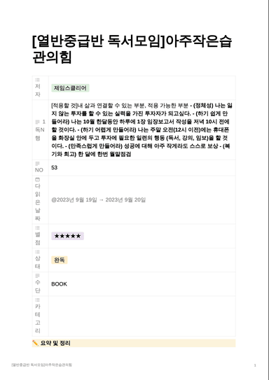 열반스쿨 중급반 (아주 작은 습관의 힘) 독서후기 [열반스쿨 중급반 31기 14조 석시드]