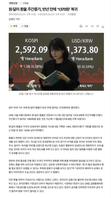 [과제제출] 경제신문 외화 관련 기사 읽기