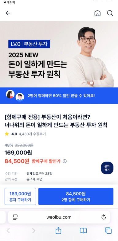 너나위님의 초보자용 부동산 투자 강의 함께 반 값에 수강하실 분을 찾습니다. ^^