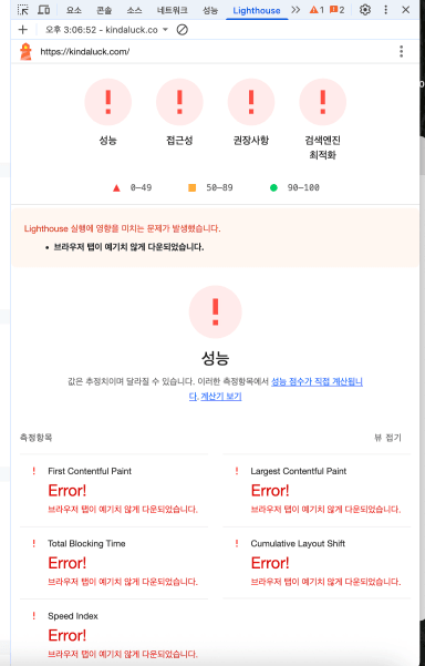 lighthouse 보고서 생성 > 페이지 로드 분석 문의