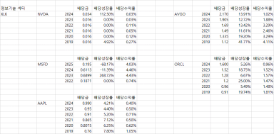 미국주식 정보기술 섹터 TOP10 배당금과 배당성장률, 배당수익률