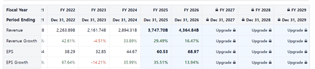 Stoack analysis는 27년 이후 EPS Growth가 잠겨 있네요 ㅠ 강의안대로 기대성장률을 직접 계산하고 싶은데, 향후 3년치 EPS Growth를 무료로 확인 할 수 있는 site가 있을까요?