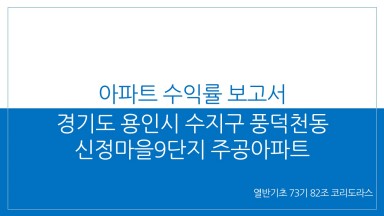 용인시 수지구 풍덕천동 신정마을9단지 주공아파트 수익률 분석 보고서[열반스쿨 기초반 73기 82조 코리도라스]