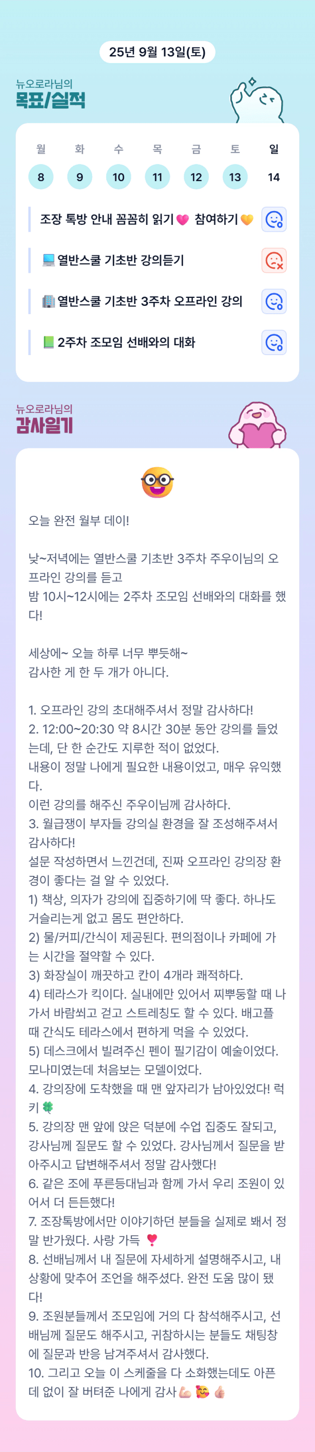 [열기 88기 29조 뉴오로라] 9/13 토 목실감