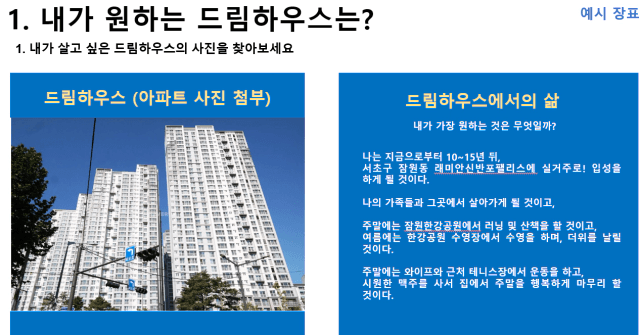 과제 제목 양식 ✍🏻 [닉네임] 내집마련 기초반 1주차 / My Dream House Project (드림하우스 프로젝트) 🏠 1️⃣ 내가 원하는 드림하우스는? (위 가이드대로 템플릿 다운 → 작성 후 캡쳐하여 사진 업로드) 2️⃣ 드림하우스 프로젝트 플랜 (로드맵) (작성 후 캡쳐하여 사진 업로드) 3️⃣ 3.3.3 계획표 ‘임장’ 칸 → ‘3개 구’