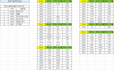 미국주식 정보기술 섹터 TOP10 배당금,배당성장률,배당수익률