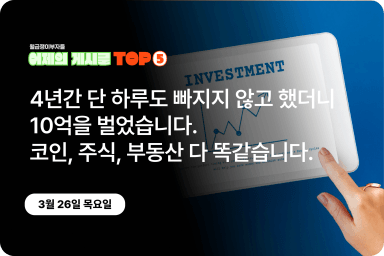 [어제의 게시글 Top5] 4년간 단 하루도 빠지지 않고 했더니 10억을 벌었습니다. 코인, 주식, 부동산 다 똑같습니다.