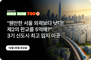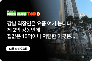 [어제의 게시글 Top5] 강남 직장인은 요즘 여기 봅니다' 제 2의 강동인데 집값은 15억이나 저렴한 이곳은...(지역명 공개)