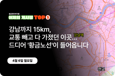 [어제의 게시글 Top5] 강남까지 15km, 교통 빼고 다 가졌던 이곳... 드디어 '황금노선'이 들어옵니다