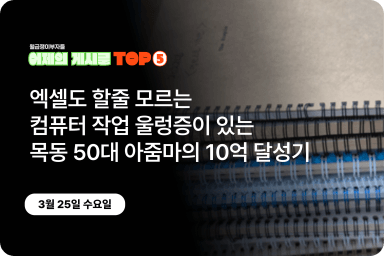 [어제의 게시글 Top5] 엑셀도 할줄 모르는 컴퓨터 작업 울렁증이 있는 목동 50대 아줌마의 고군분투 10억 달성기