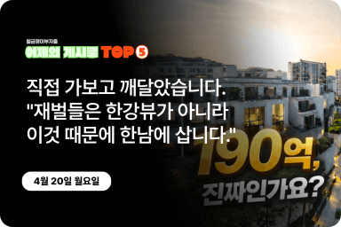[어제의 게시글 Top5] “강남 뺨치게 살기 좋아요" 근데 강남보다 집값 24억 낮은 이곳 (지역 바로 공개)