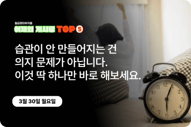 [어제의 게시글 Top5] 습관이 안 만들어지는 건 의지 문제가 아닙니다. 이것 딱 하나만 바로 해보세요.