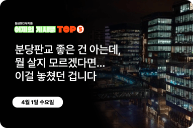 [어제의 게시글 Top5] 분당판교 좋은 건 아는데, 200개 단지 중 뭘 사야 할지 모르겠다면... 이걸 놓쳤던 겁니다