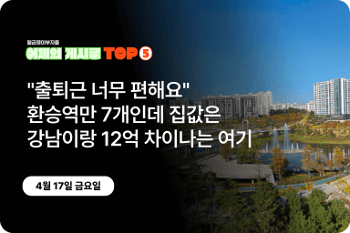 [어제의 게시글 Top5] "출퇴근 너무 편해요" 환승역만 7개인데 집값은 강남이랑 12억 차이나는 여기가 어디냐면..