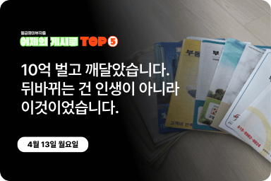 [어제의 게시글 Top5] 10억 벌고 깨달았습니다. 뒤바뀌는 건 인생이 아니라 이것이었습니다.