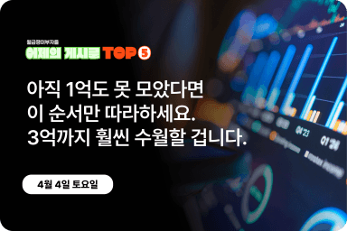 [어제의 게시글 Top5] 아직 1억도 못 모았다면 이 순서만 따라하세요. 3억까지 훨씬 수월할 겁니다.