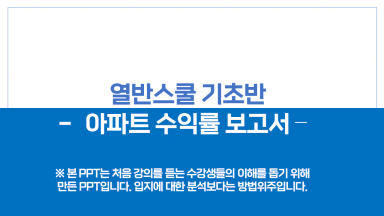 [열반스쿨 73기 84조 찬스2] 아파트수익률 보고서 작성 방법 대방출! PPT첨부