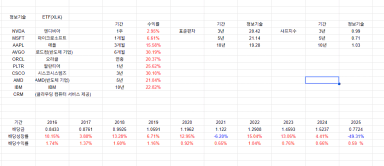 미국주식 정보기술 섹터 TOP10 배당금과 배당성장률, 배당수익률