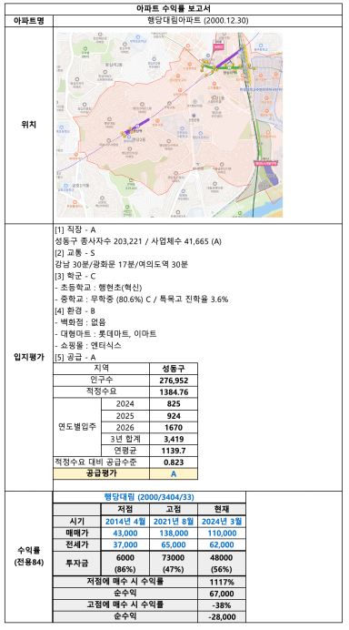 서울시 성동구 행당동 행당대림아파트 수익률 분석 보고서 [열반스쿨 기초반 73기 19조 잼1]