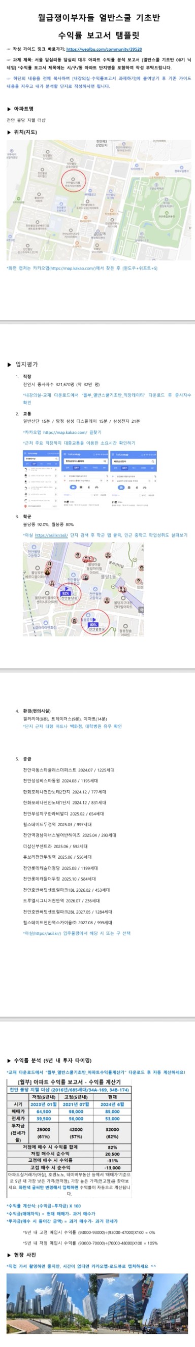 천안 불당동 천안불당지웰더샵 아파트 수익률 분석 보고서 [열반스쿨 기초반 77기 66조 인생은선불]