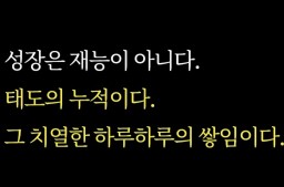 성장은 재능이 아니다. 태도의 누적이다. 그 치열한 하루 하루의 쌓임이다. 진짜 성장은 드라마틱한 결심이 아니라, 지독할 정도로 단단한 반복에서 태어난 다는 것을. 결국 인생은 운이 아니라 반복되는 하루의 태도로 갈린다.