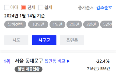 전세매물 줄어드는 곳 보는 방법에 대해서 질문있습니다
