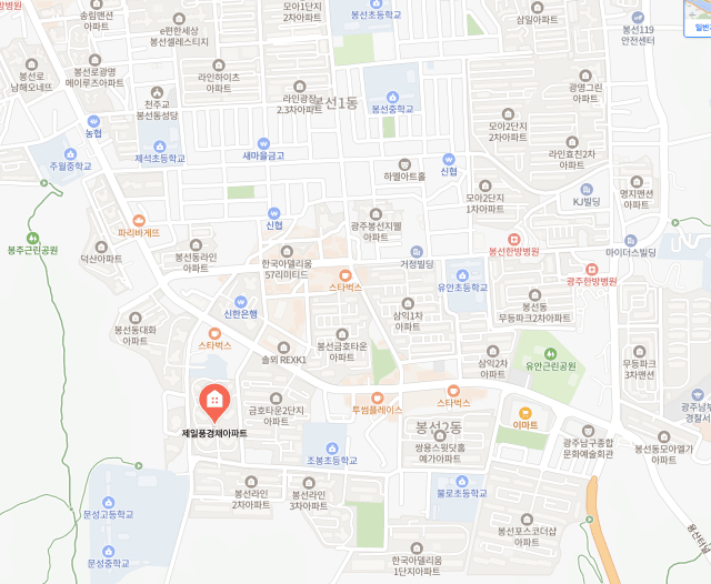 ✅아파트명 봉선제일풍경채엘리트파크 ✅위치(지도) 6개의 동, 남서/남동방향 ✅입지평가 1. 직장 C등급 남구 종사자수 68656명, 사업체수 18706 2. 교통 S등급 지역내 주요직장 전남대병원, 조선대병원, 조선대: 10분정도 광주송정역까지 21분, 광주역 16분, 광주종합버스터미널(유스퀘어, 신세계백화점) 18분 광주광역시청 21분 제2순환도로, 용산