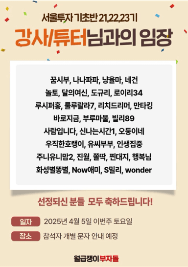 [서울투자기초반 22기 2렇게 투자하면 1지 않조 리치드리머] 줴러미 튜터님과의 따수운 조장튜터링 후기