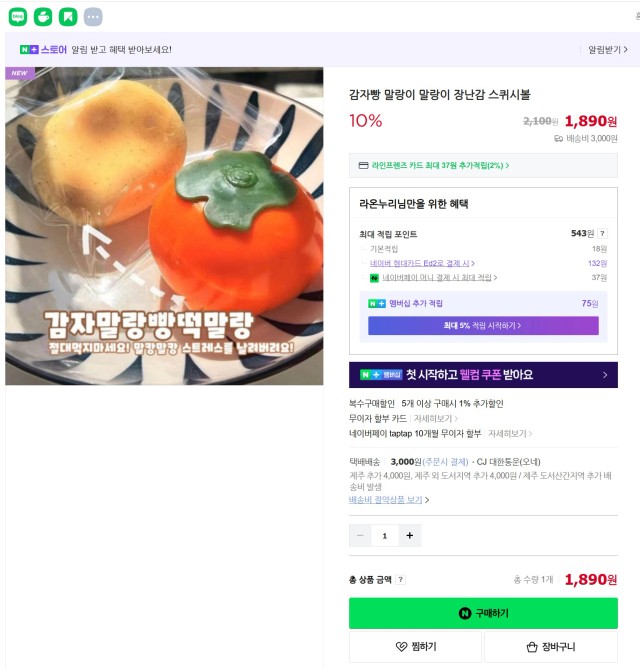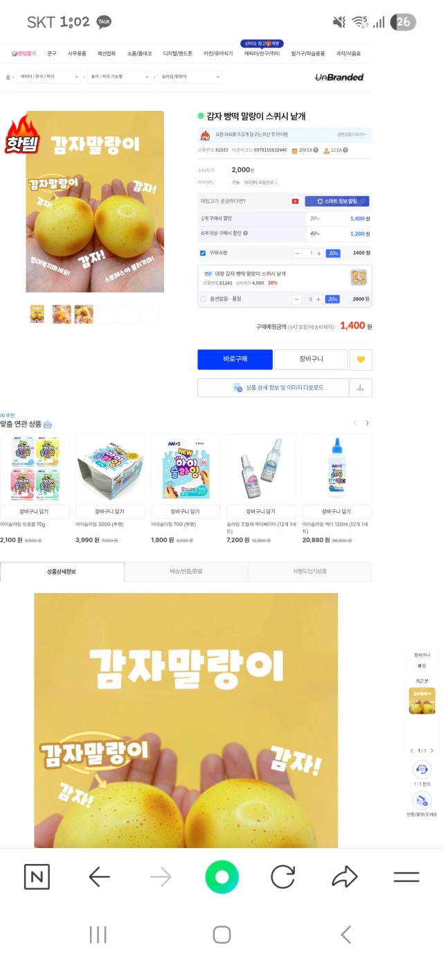 과제 제목 양식✍️ [닉네임] 스마트스토어 챌린지 Day2_팔리는 상품명, 키워드, 이미지 만들기 1. 내가 만든 팔리는 상품명과 키워드를 적어보세요✏️ 기본 상품명 내가 줄인 상품명 관련 키워드 5개 감자 빵떡 말랑이 스퀴시 낱개 감자빵 말랑이 말랑이 장난감 말랑이 스퀴시볼 스퀴시 스퀴시 만들기 2. 대표이미지와 겹치지 않는 이미지를 캡처 후, 사이즈를