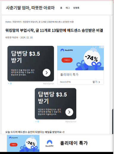 애드센스 기초반 5기 [아로마] 승인/수익 자랑