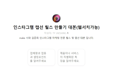 [김준희 대표 ] AI글쓰기 3주차 과제. 나만의 GPTs 만들기 - 인스타그램 릴스 대본 만들기와 릴스 캡션 만들기