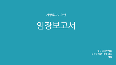 지방투자 기초반 1강 후기 [지방투자 기초반 14기 69조 박님]