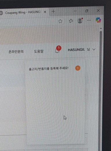쿠팡윙 판매자정보에 들어가니 출고지/반품지 메시지가 뜹니다.