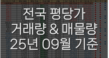 [빙바나나] 전국 시세 25년 9월 평당가 / 거래량 & 매매,전세 매물량 (25.09.05)
