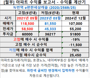 한 장에 담는 입문자용 아파트수익률보고서 (양식 포함) [열기68기 47조 47귀정 모찌롱]