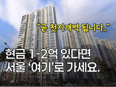 현금 1-2억 있다면, 서울 ‘여기’를 보세요. 지금 경기도보다 집값이 더 싸요. (지역명 공개)