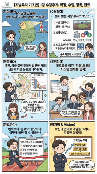 [지방투자기초반 33기 2렇게 매력적인 2 동래구는 우리가 접수하죠_밸류매니아] 1강 후기: 지방은 '땅'이 아니라 '앞'을 보는 것, 6년 뒤 10억의 열매를 향해 '완료'로 걷다(feat. 권유디님)