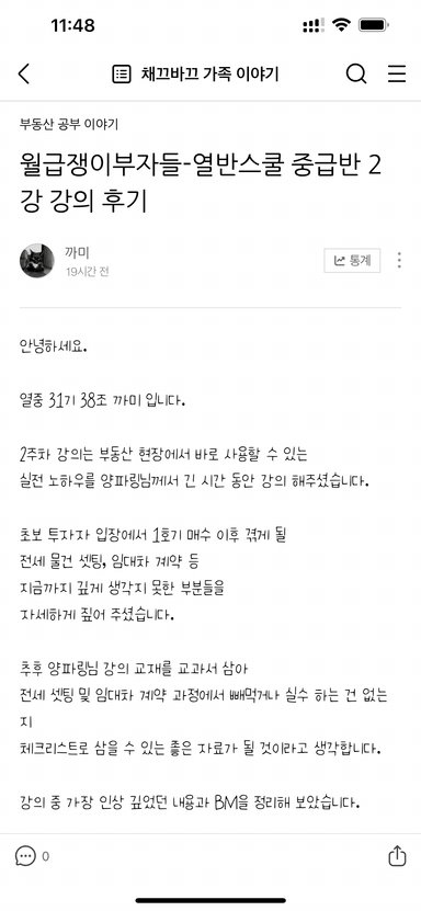 열반스쿨 중급반 2강 강의 후기 [열반스쿨 중급반 31기 38조 까미16] - SNS 후기