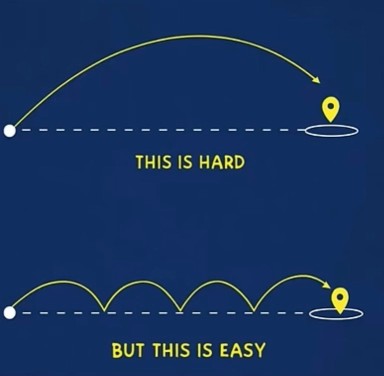 잘게 쪼개면 쉬워집니다. 인생도, 목표도 이번 달 10kg 뺄거야! 이번 달 아는 지역 하나 더 늘릴거야! 이번 달 전화임장 50번 할거야! 높은 목표는 우리의 삶을 바꿔주기도 하지만 단숨에 달성하기는 쉽지 않습니다. 높은 목표를 정했다면, 잘게 쪼개보세요. 오늘 저녁은 건강을 위해 샐러드 먹을거야! 오늘 저녁은 00동 임장할거야! 오늘 저녁은 전화임장 두